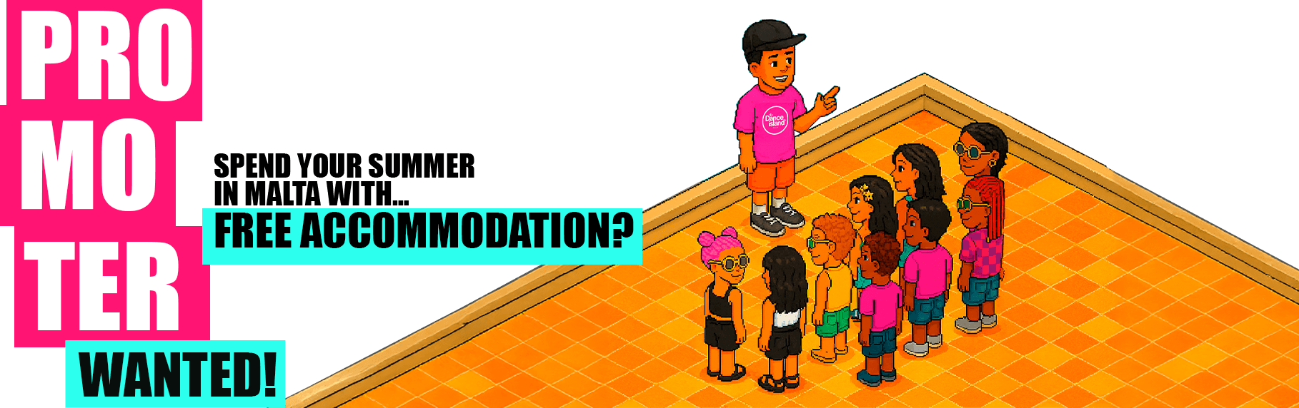 To apply, you must fill out the form and submit a video of no more than 20 seconds telling us who you are and why you’re the perfect candidate to be a Dance Island promoter.